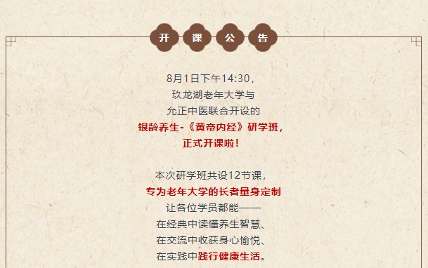 喜讯 | 银龄养生-《黄帝内经》研学班,开课啦!