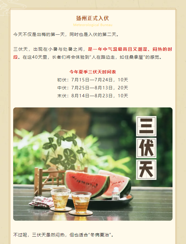 扬州今日出梅!但“三伏天”来了.....